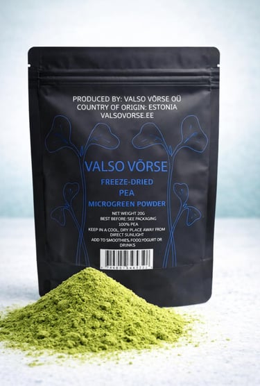 Pea microgreen powder has a mild, fresh and slightly sweet flavor with soft green and gently nutty notes, making it well balanced and easy to use without overpowering other ingredients; it works beautifully in salads, smoothies, sandwiches, buddha bowls and as a finishing touch on warm dishes, adding natural freshness and a clean green taste